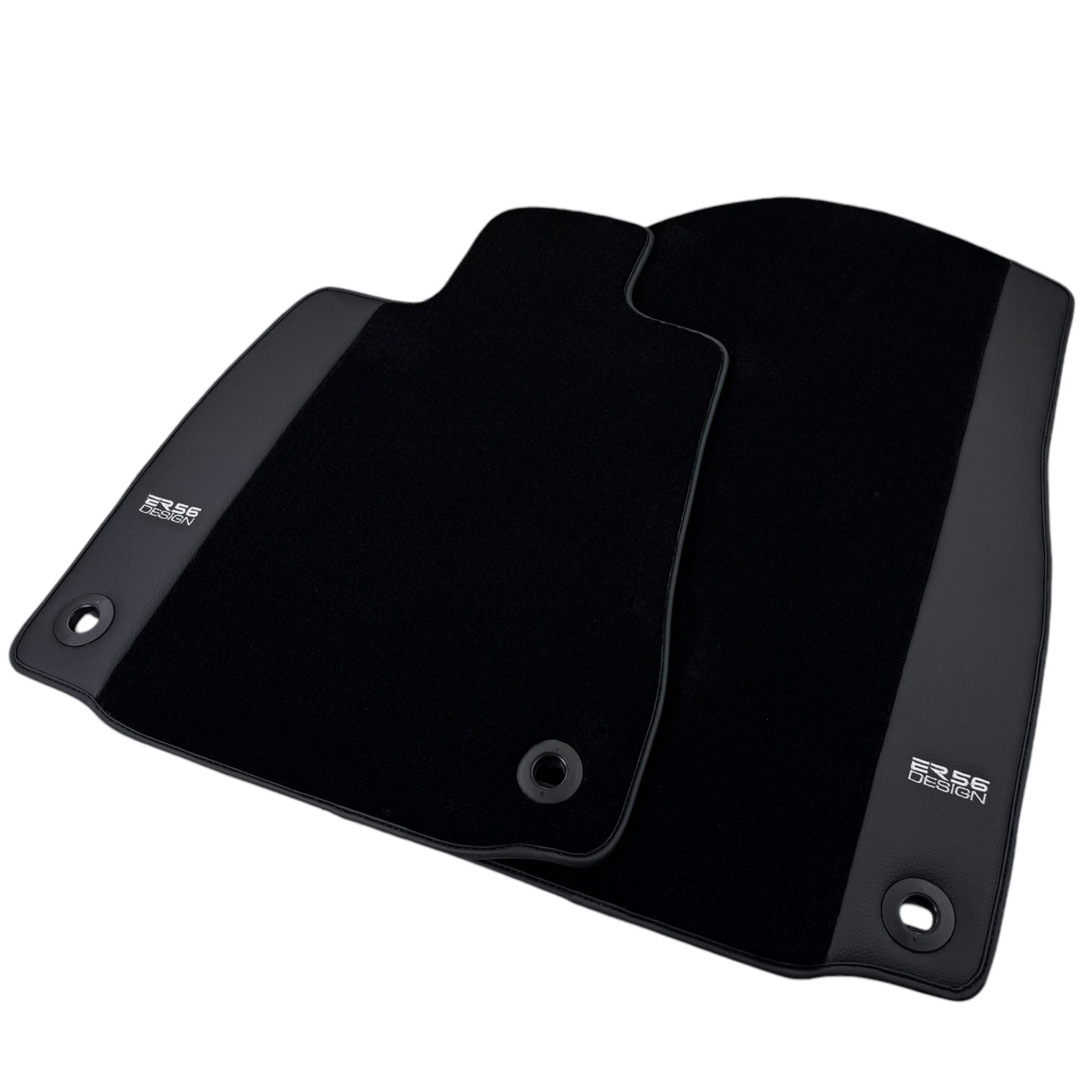Schwarze Fußmatten für Lexus RC-F (2015-2024) mit Lederrändern von ER56 Design