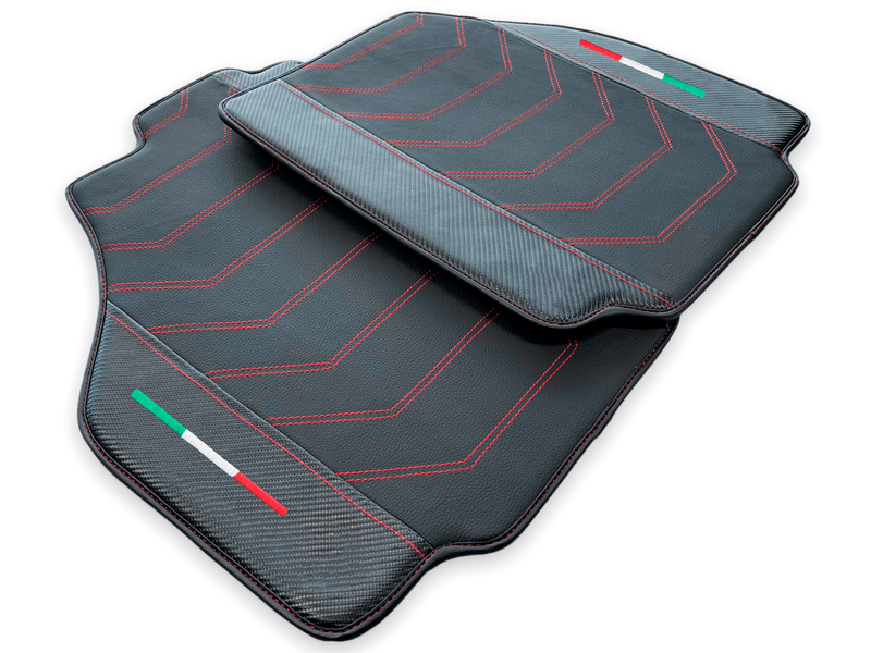 Leather Floor Mats For Ferrari 488 Pista Spider (2019-2021) With Carbon Fiber | Italian Edition