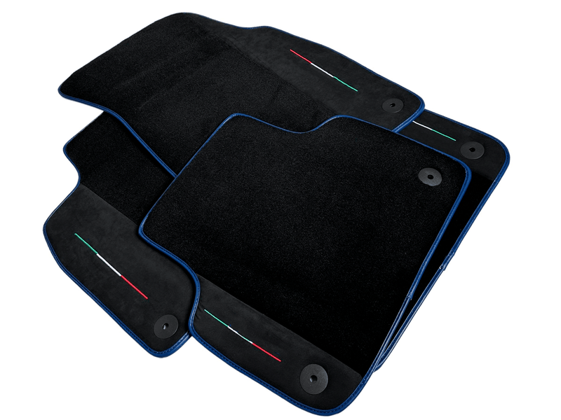 These high-quality floor mats are designed specifically for the Lamborghini Urus, featuring a sleek black design with luxurious Alcantara leather and stylish dark blue trim. Protect your luxury vehicle while adding a touch of sophistication and comfort. Expertly crafted for a perfect fit.