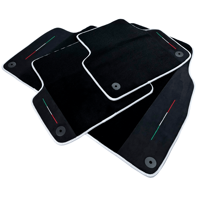 Black Floor Mats For Lamborghini Urus With Alcantara Leather White Trim