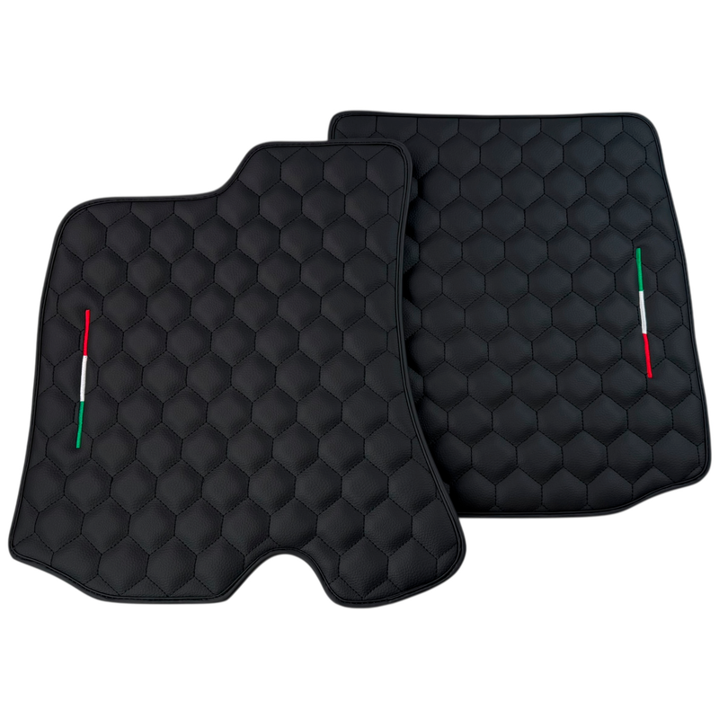 Schwarze Lederfußmatten mit symmetrischem Sechseckmuster für Ferrari Roma (2021–2024) mit italienischer Flagge
