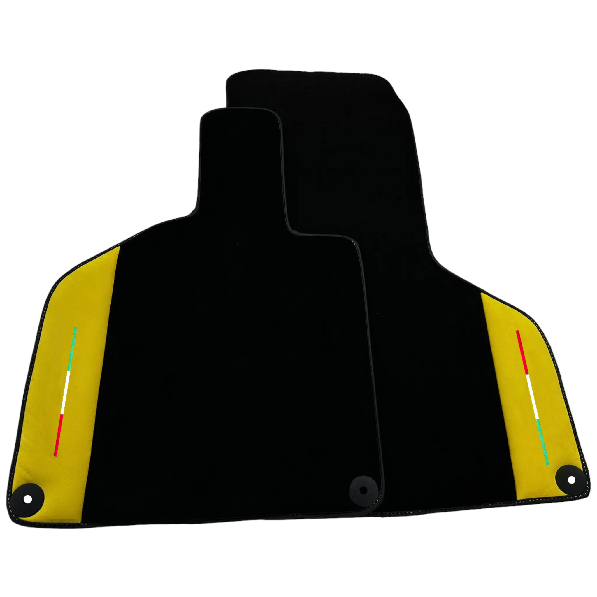 Tapis de voiture noirs pour Lamborghini Huracan avec cuir Alcantara jaune | Drapeau italien