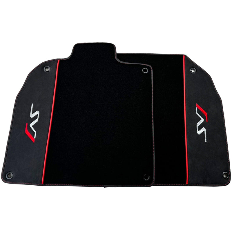 Améliorez l'intérieur de votre Lamborghini Aventador SVJ avec ces tapis de voiture noirs premium arborant des logos SVJ et une bordure rouge. Fabriqués en cuir Alcantara, ces tapis offrent un look élégant et luxueux. Conçus par la marque AutoWin, ces tapis s'adaptent parfaitement à votre SVJ pour une mise à niveau impeccable.