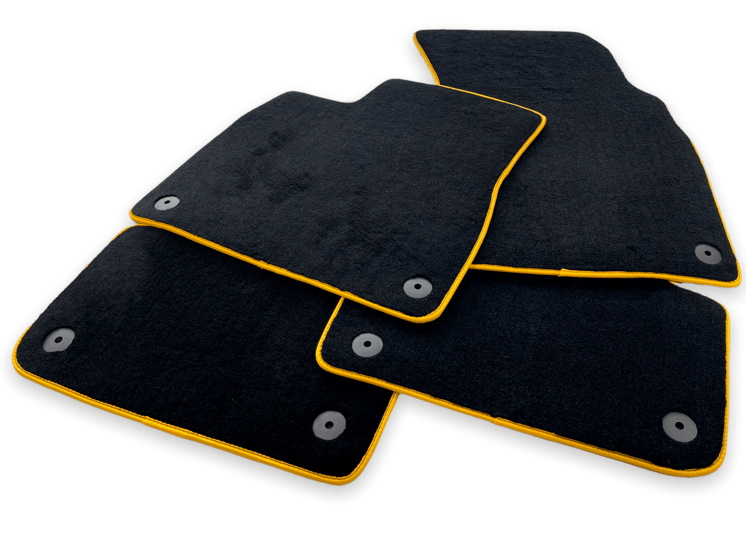 Tapis de voiture personnalisables pour Lamborghini Urus noirs sur mesure avec des bordures jaunes