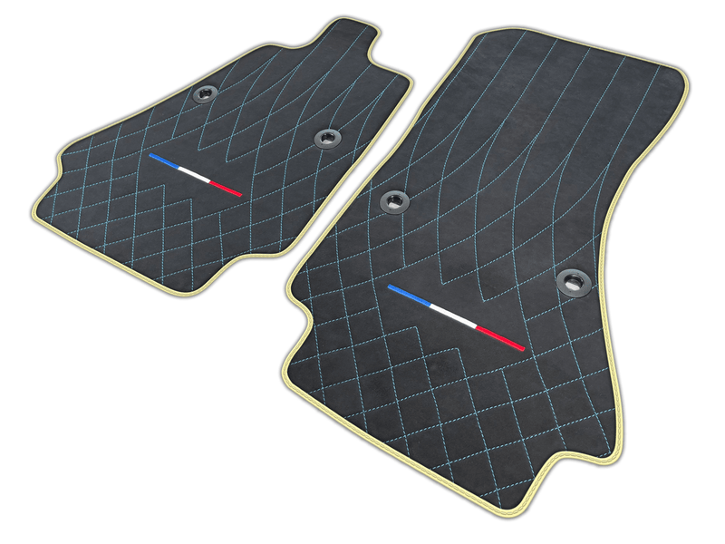 Schwarze Fußmatten aus Alcantara-Leder für Bugatti Chiron mit FR-Flagge | Verschiedene Zierfarben