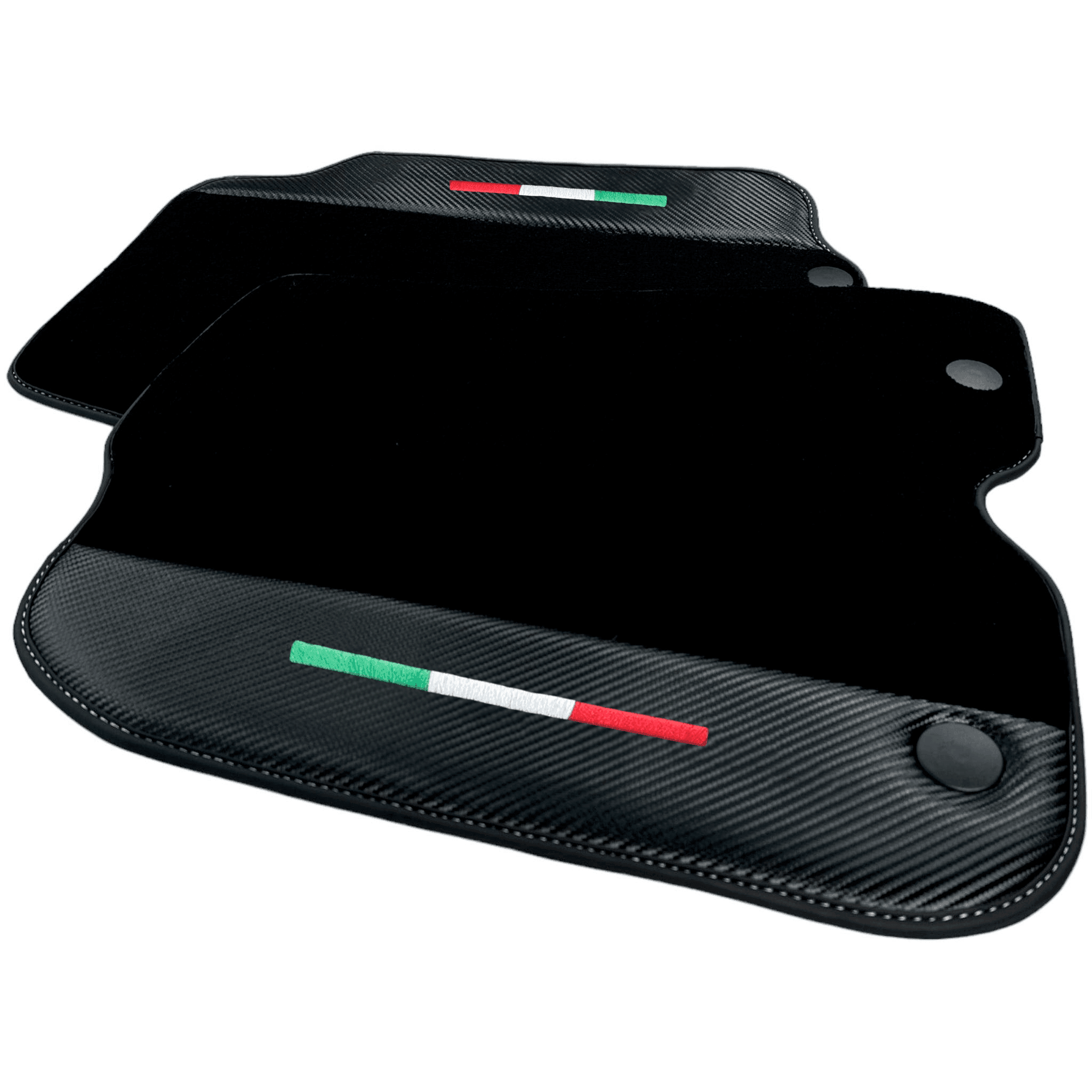Schwarze Fußmatten für Ferrari F12 Berlinetta (2012–2022) mit Carbon-Leder