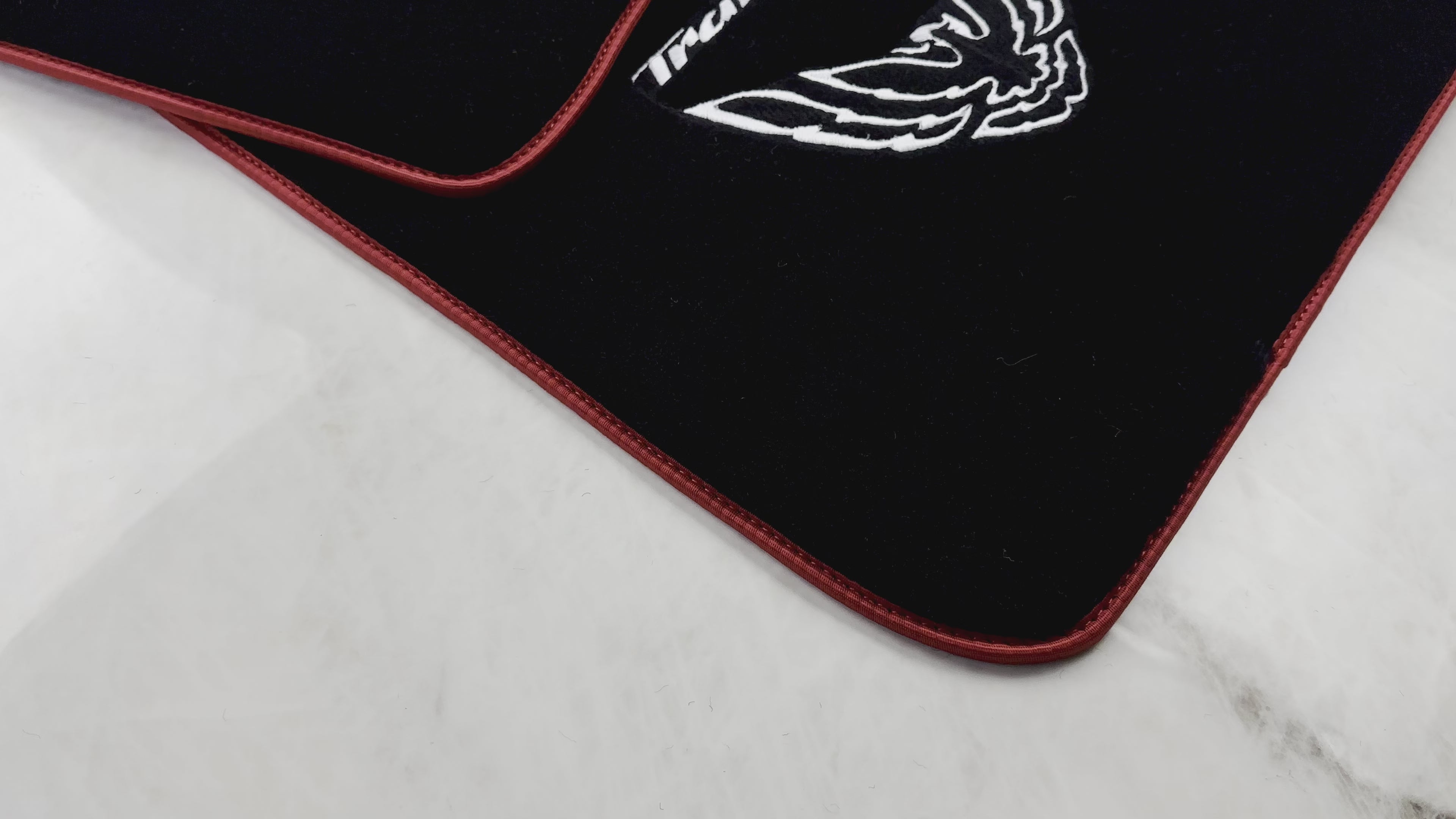 Erwecken Sie Ihren Pontiac Firebird mit diesen offiziell lizenzierten TransAm-Logo-Fußmatten zum Leben. Diese stilvollen schwarzen Matten wurden perfekt für die Modelle von 1970–1981 gefertigt und verfügen über ein einzigartiges rotes Zierdesign. Sorgen Sie dafür, dass Ihr Oldtimer elegant und stilvoll aussieht.