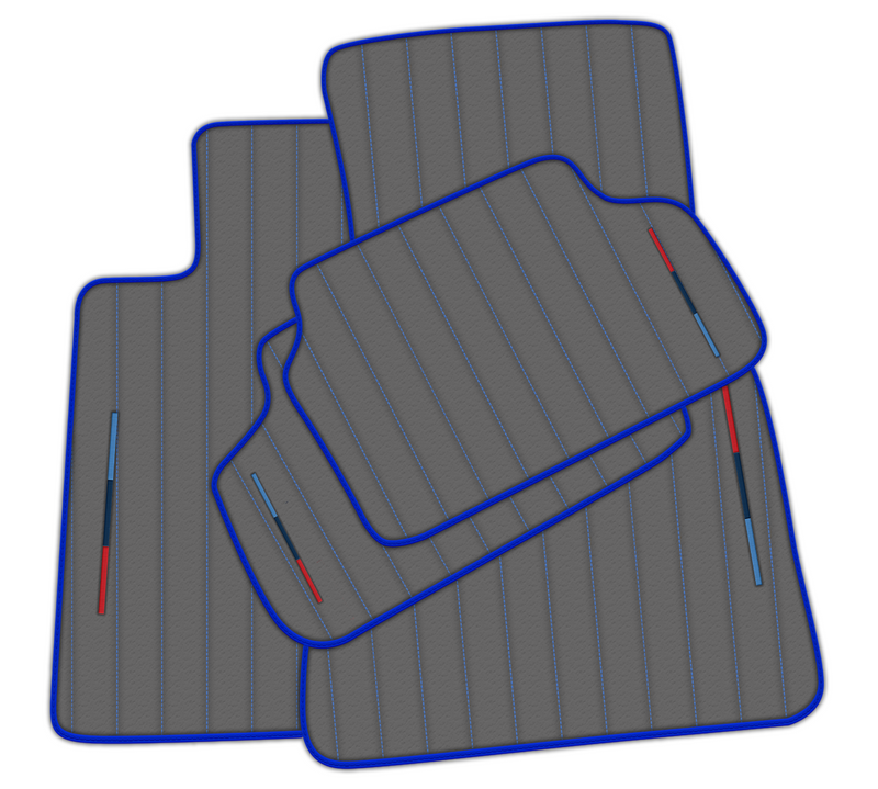 Werten Sie Ihren BMW mit diesen hochwertigen grauen Lederfußmatten auf. Sie verleihen Ihrem BMW mit ihrem Linienmuster und den blauen Nähten nicht nur einen eleganten und stilvollen Look, sondern sorgen mit der ikonischen M-Trikolore auch für zusätzliche Eleganz. Perfekt, um den Boden Ihres Fahrzeugs zu schützen und gleichzeitig sein Erscheinungsbild zu verbessern.